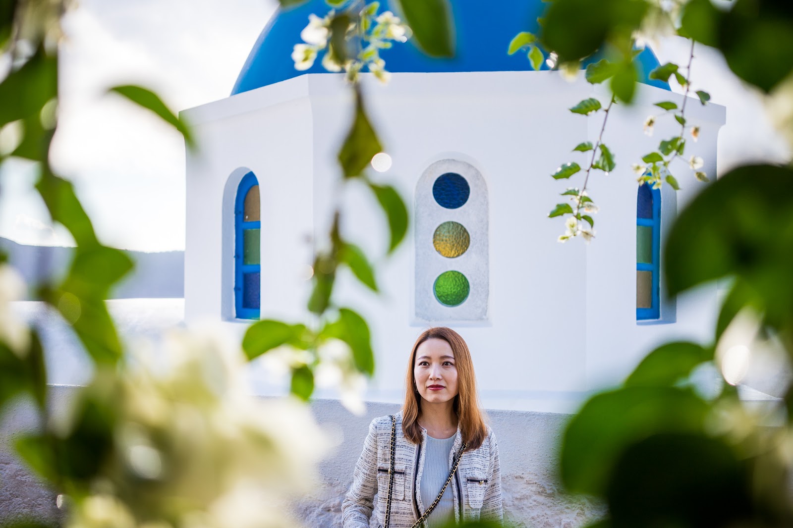 這是沿著主街就可以走到的第一個藍頂教堂,不過通常這裡都會有很多人,我特別喜歡躲在旁邊店家的綠樹後拍攝,有另一種氛圍。